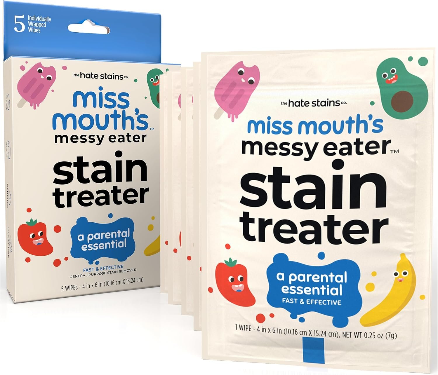Miss Mouth's Messy Eater Stain Treater Wipes - 5 Pack Stain Remover - Newborn & Baby Essentials - No Dry Cleaning Food, Grease, Coffee Off Laundry, Underwear, FabricMiss Mouth’s Messy Eater Stain Treater Wipes – 5 Pack Stain Remover – Newborn & Baby Essentials – No Dry Cleaning Food, Grease, Coffee Off Laundry, Underwear, Fabric